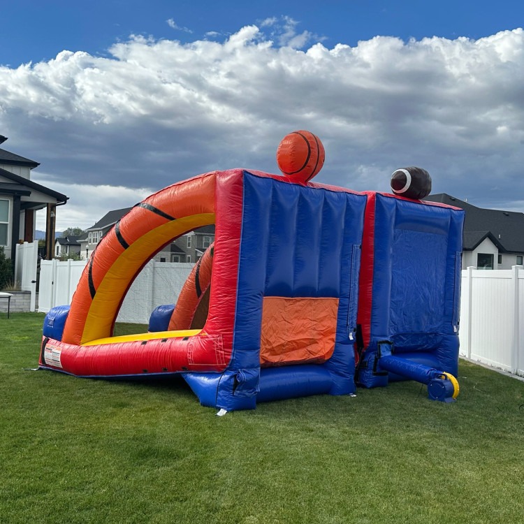 Since these units are designed to connect and run from a single blower, they set up neatly together—and booking both at once saves you $20 with this bundle. Perfect for schools, parties, corporate events, and community gatherings throughout Riverton, Utah and surrounding areas.