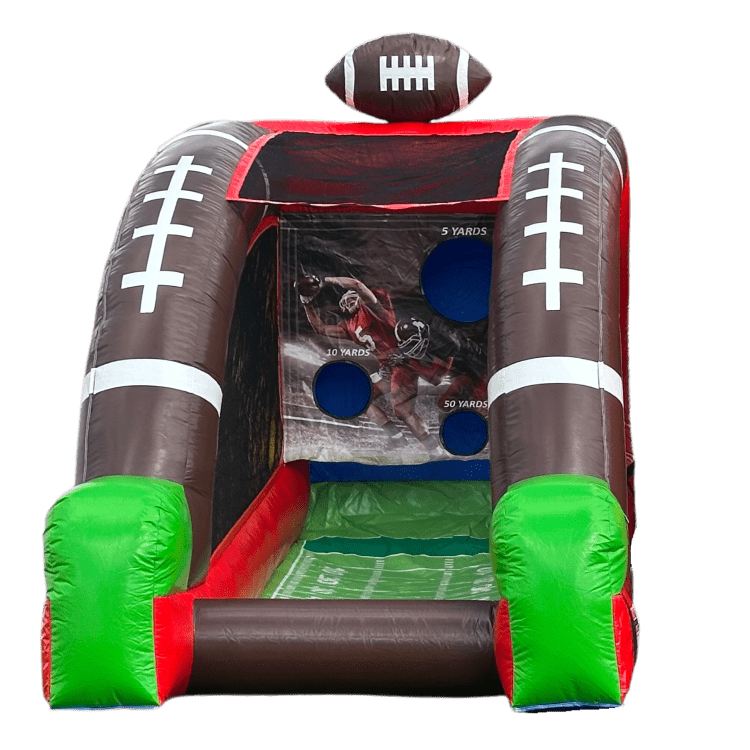 Measuring 12 ft in height, 9 ft in width, and 14 ft in depth, this inflatable football game is a crowd-pleaser for parties of all sizes. The large-scale design and bold graphics command attention, while the set comes with three soft footballs so everyone can get in on the action. Whether you're hosting a school fundraiser, a church event, or a backyard birthday party, this game adds fun, competition, and a touch of sporty flair.